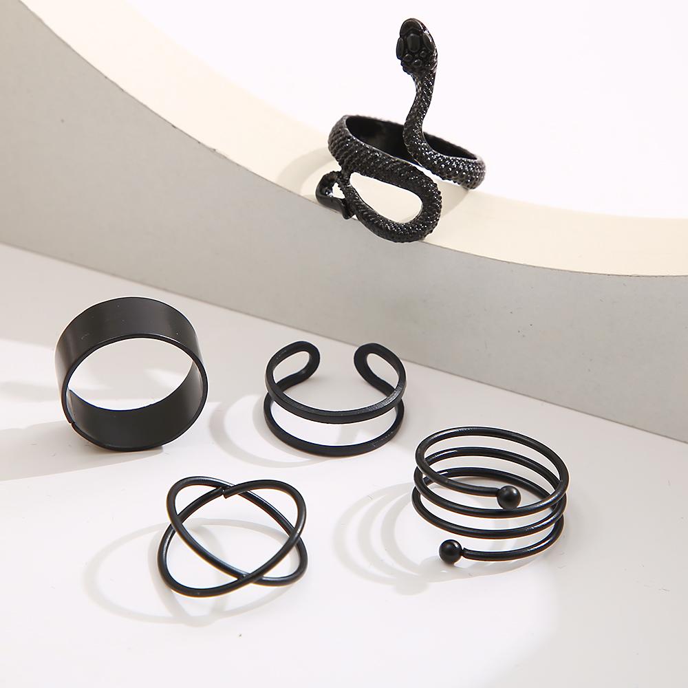 5 шт., набор колец в стиле панк-змеи черного цвета, набор женских колец на палец, ювелирные изделия