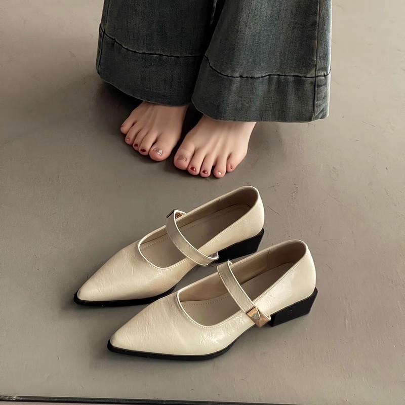 Shallow mouth word with pointed thick heel high heels spring and summer French medium heel Mary Jane shoes commuter women's shoes