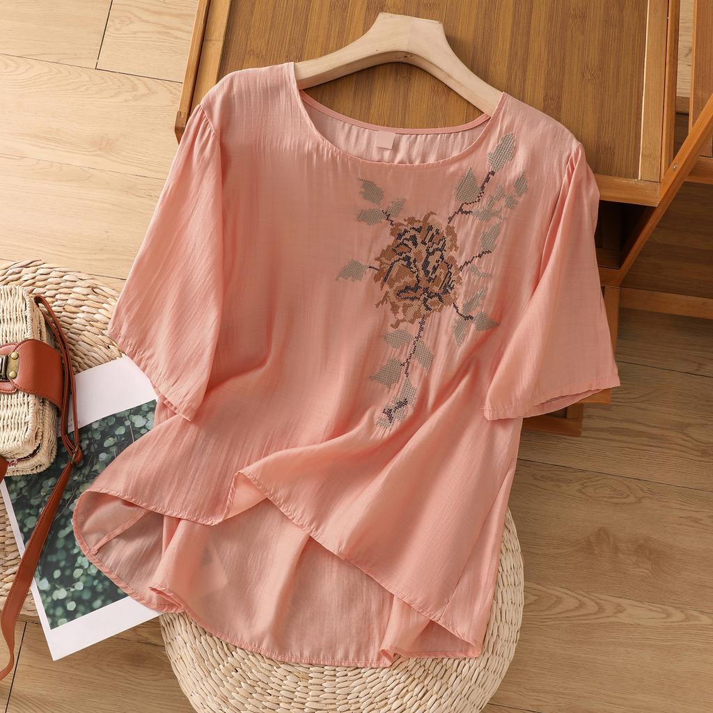 DIMANAF 2025 Новая Летняя Футболка Большого Размера Женская с Круглым Вырезом и Коротким Рукавом Винтажная Льняная Свободная Майка Футболки Макси — купить товар онлайн с бесплатной доставкой по всему миру!