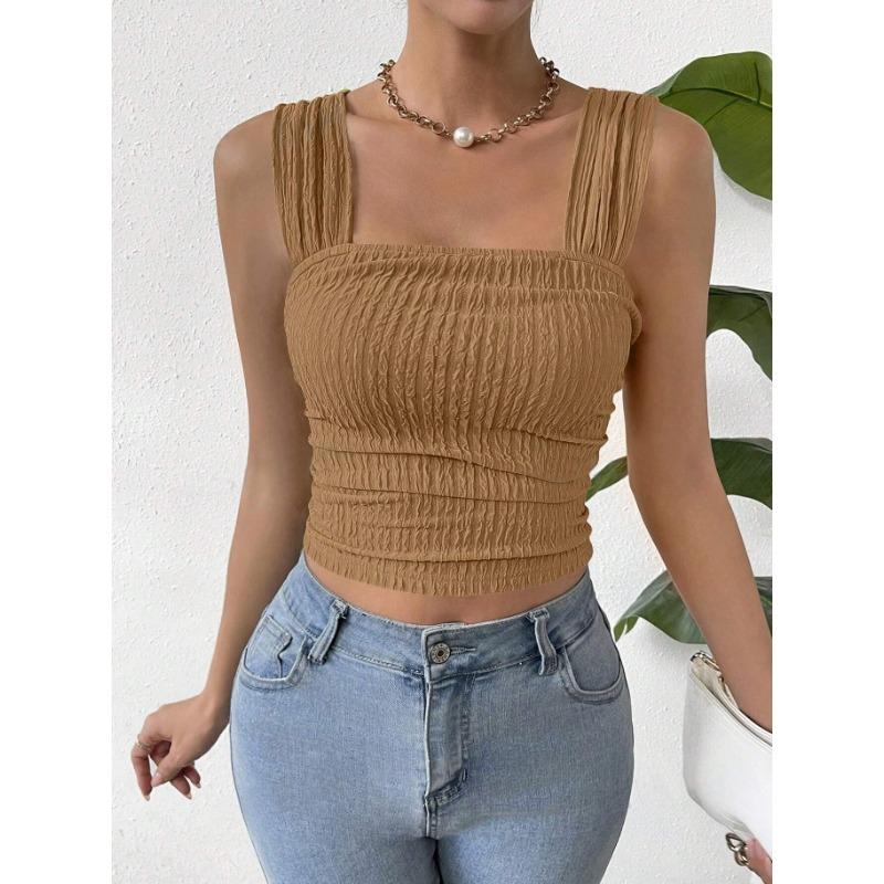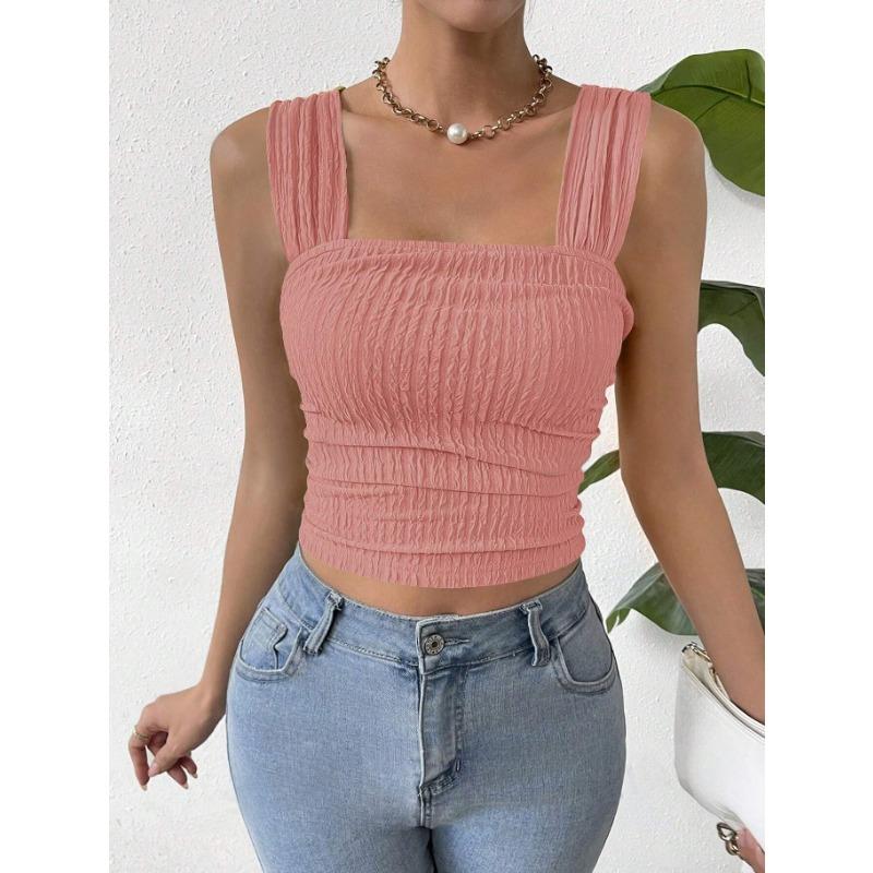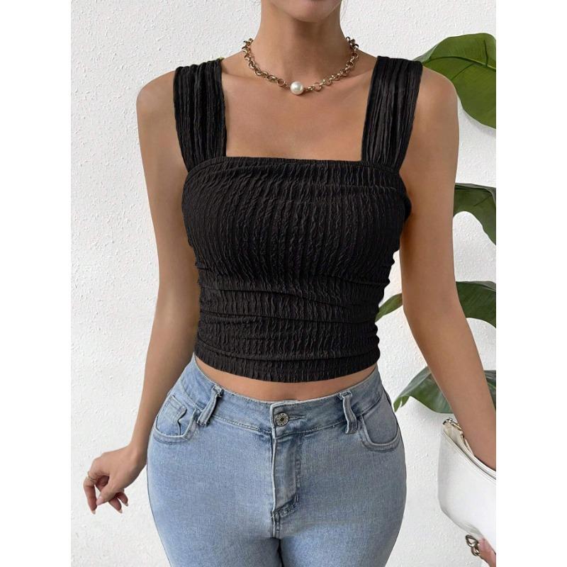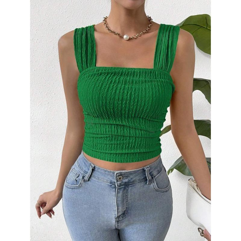Женский укороченный топ без рукавов с открытым пупком, квадратным воротником и жилетом на бретелях