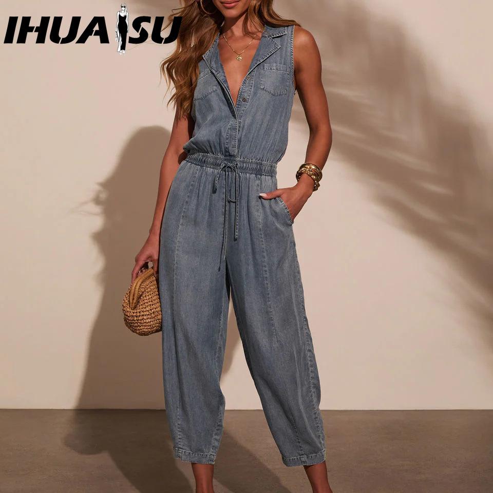 IHUASU Женский летний повседневный комбинезон из тонкого стираного денима