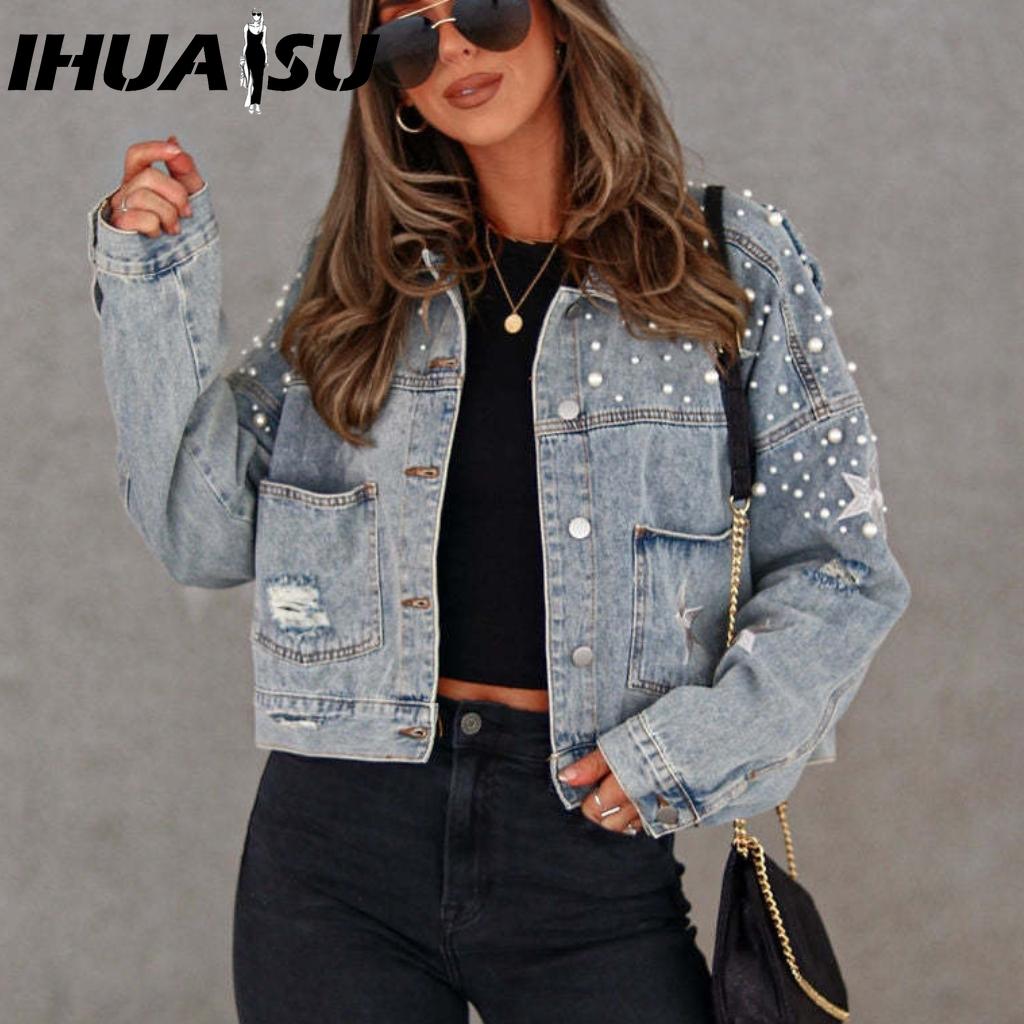 IHUASU Модная женская свободная джинсовая куртка с бусинами из тяжелой промышленности — купить товар онлайн с бесплатной доставкой по всему миру!