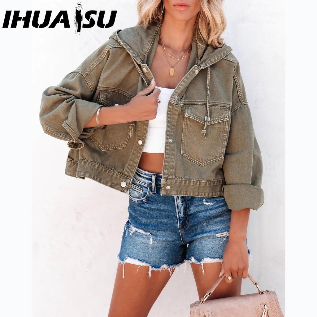 Джинсовая куртка IHUASU Свободная куртка с капюшоном на кулиске для женской уличной моды Осенью и Зимой — купить товар онлайн с бесплатной доставкой по всему миру!