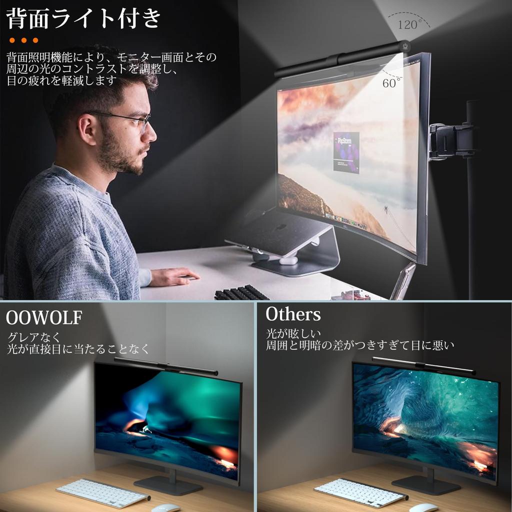 [Беспроводной пульт дистанционного управления + подсветка непрямого освещения 16 см x 2] Светильник-монитор OOWOLF поставляется с пультом дистанционного управления, оснащенным новой технологией соединения 2.4G, что придает ему роскошное ощущение и интуитивно понятное управление кнопками.. Длина увеличена с 4,2 см у предыдущей модели до 16 см, чтобы обеспечить более широкий диапазон освещенности окружающего света для источника подсветки.. Подсветка добавляется в качестве задней подсветки для расширения диапазона освещения при использовании в темных условиях и регулировки контрастности света между экраном монитора и его окружением для повышения комфорта глаз.
