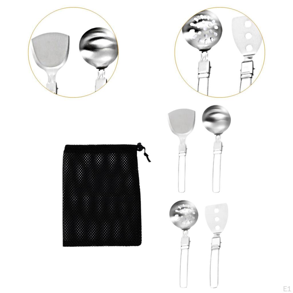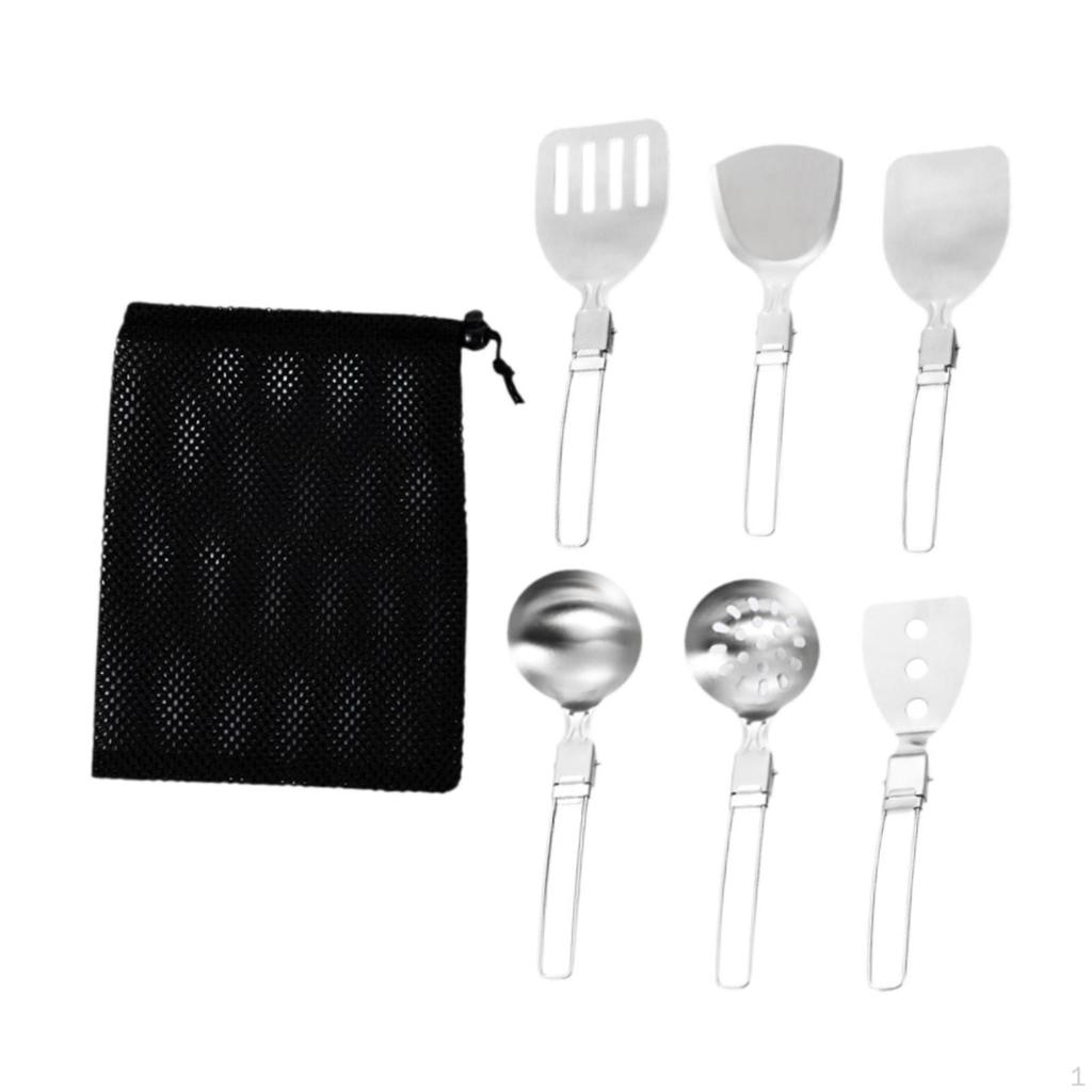 - 【Складной дизайн】:Набор походной кухонной утвари имеет уникальную складную конструкцию со складной ручкой, которая надежно фиксируется на месте во время использования.. Конструкция с полой лопаткой для жарки, фильтрация масла и контроль масла.