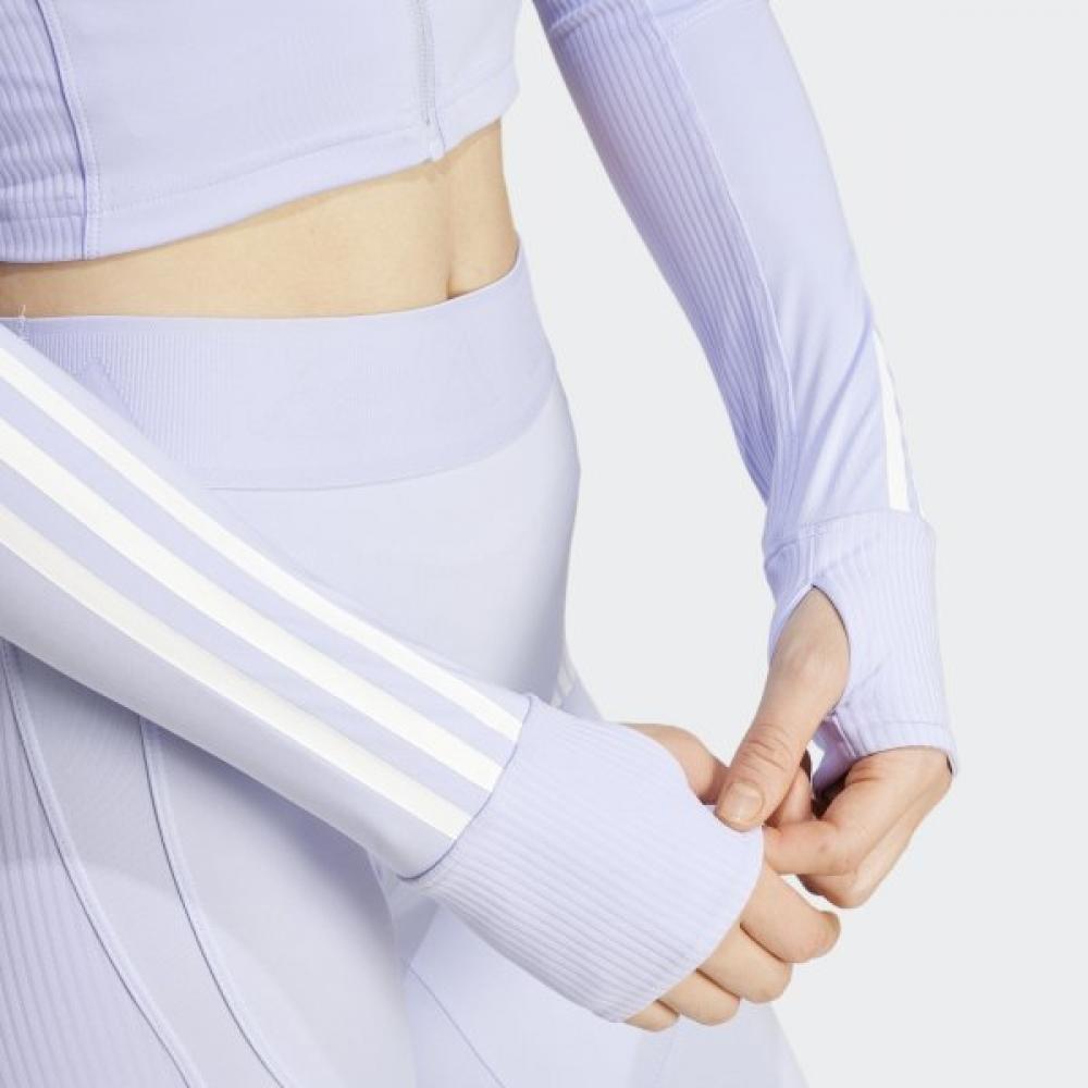 Представляем женскую кофту Adidas Hyperglam Full-Zip Rib Cover-Up — незаменимый элемент гардероба для прохладных приключений на свежем воздухе. Изготовленная из смеси 83% полиэстера и 17% полиуретана, эта накидка обеспечивает комфорт и гибкость.. Модель застегивается на молнию по всей длине для удобства надевания, а ребристые манжеты и подол обеспечивают плотную посадку.
