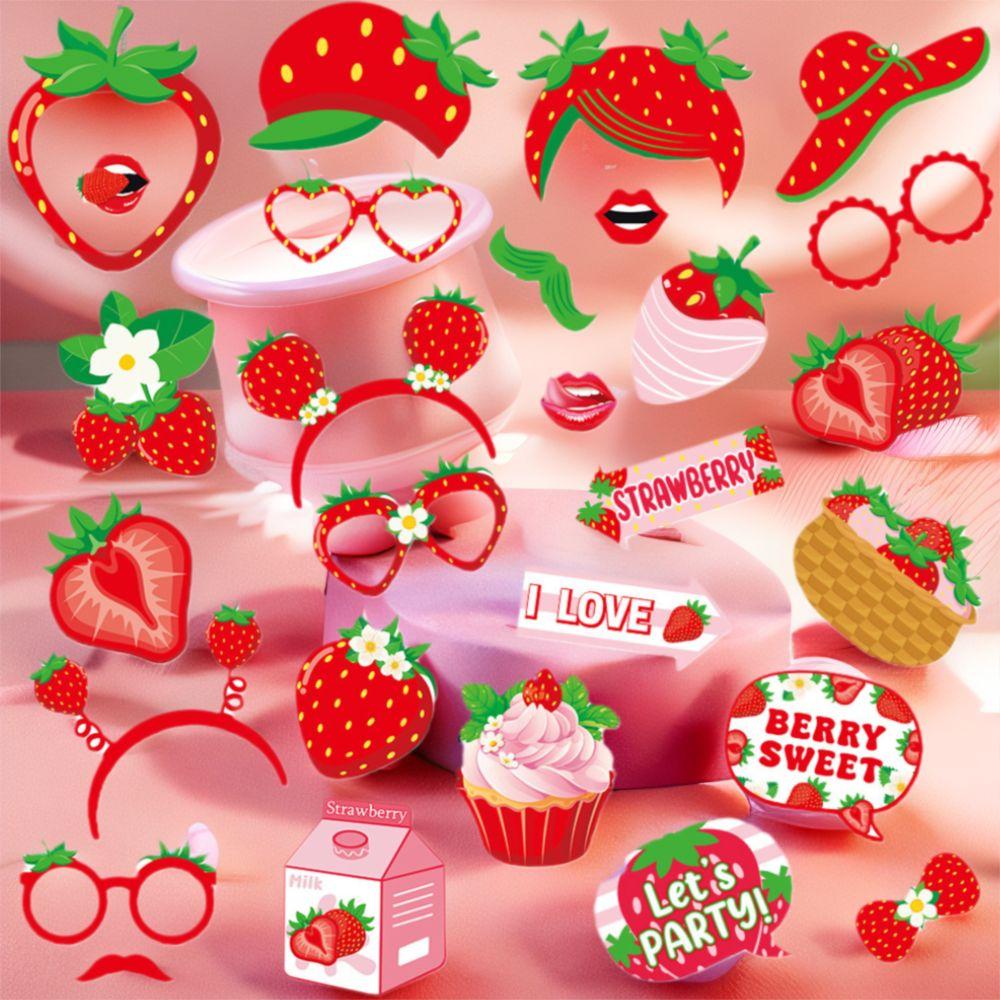 Paper Photo Booth Props Red Dress Up Costume Mask Summer Fruit Photo Props Beach Pool Party