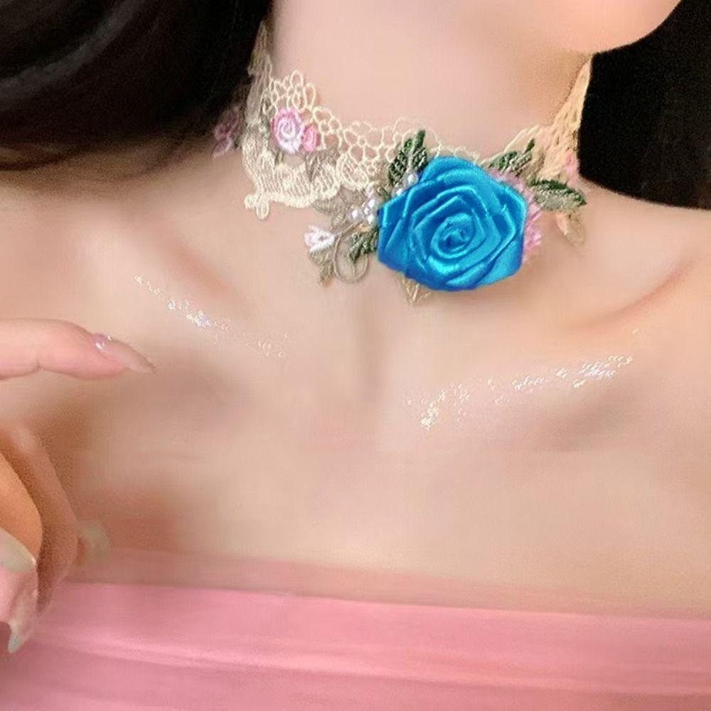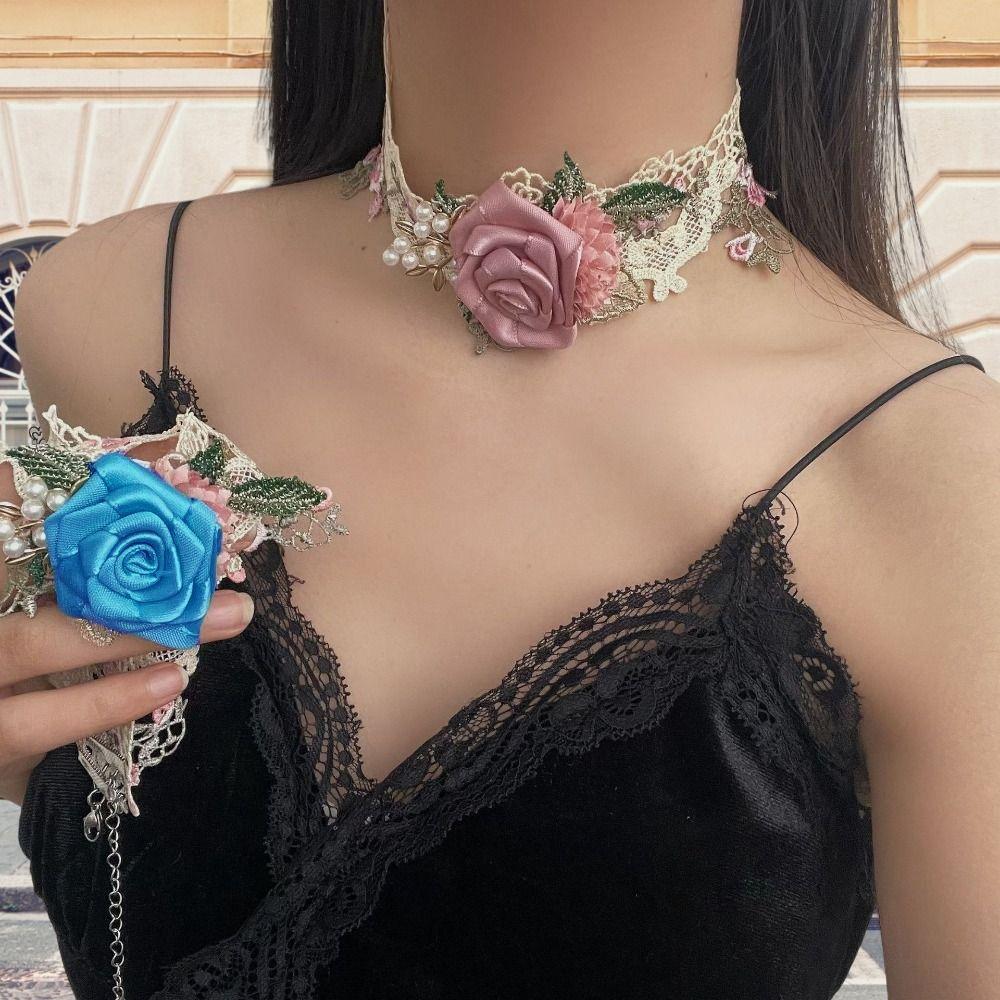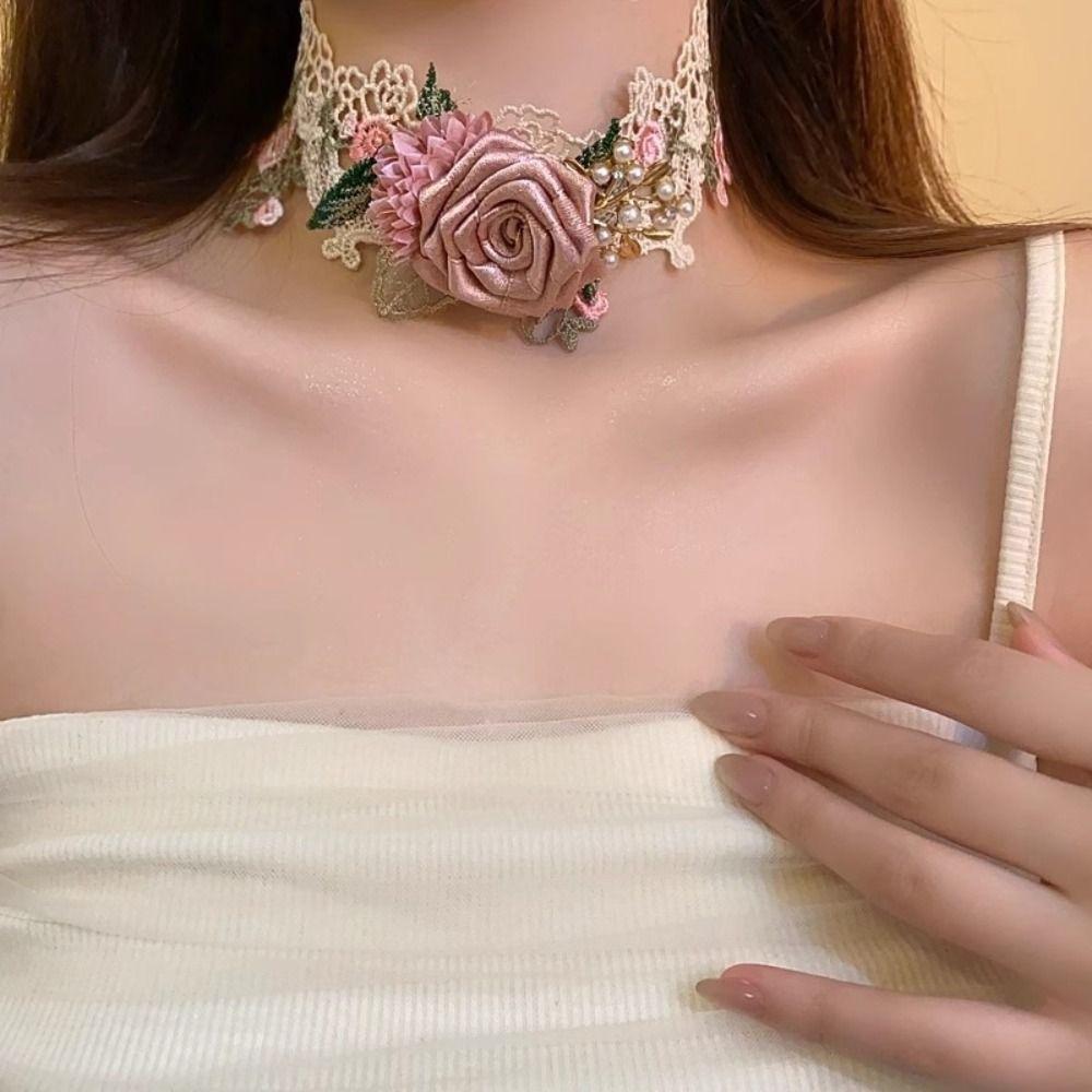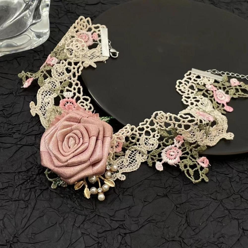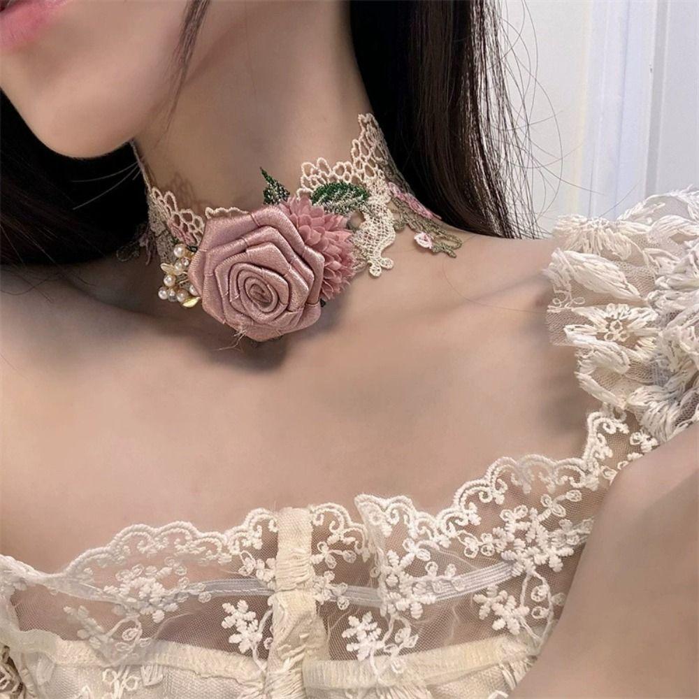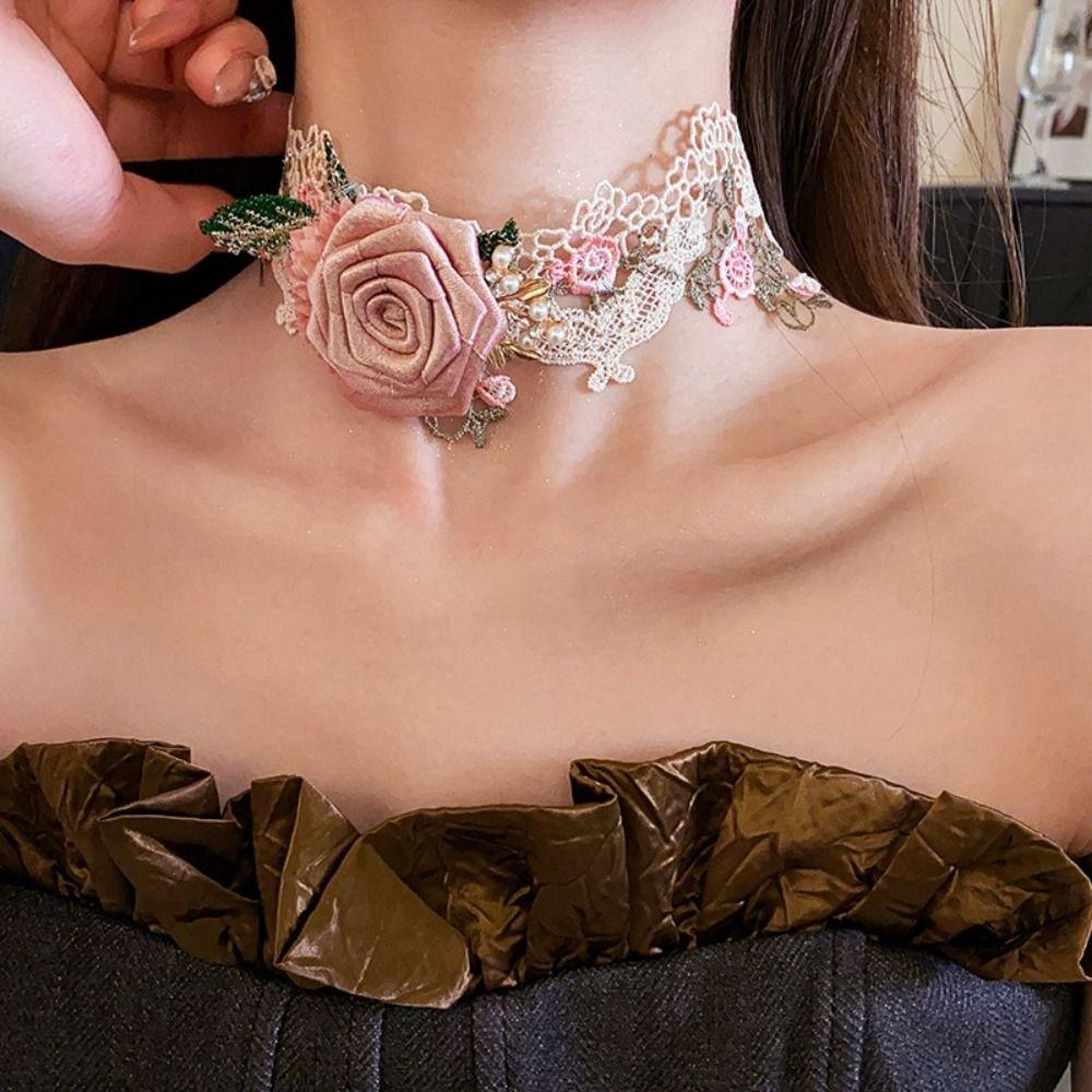 Текстурированное розовое колье-чокер во французском стиле, сладкое тканевое колье, элегантное кружевное колье-чокер для женщин