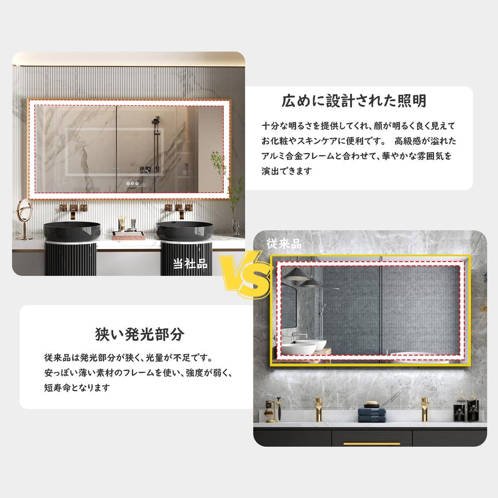 [Незапотевающее зеркало, которым удобно пользоваться даже зимой] Это зеркало для ванной комнаты оснащено обогревателем, и простым нажатием кнопки «Незапотевающее» на поверхности зеркала можно предотвратить или устранить запотевание зеркала из-за пара, подогрев зеркало, что делает его очень удобным для использования зимой.
