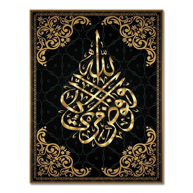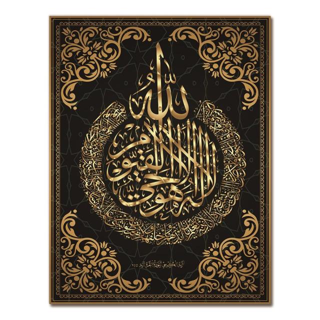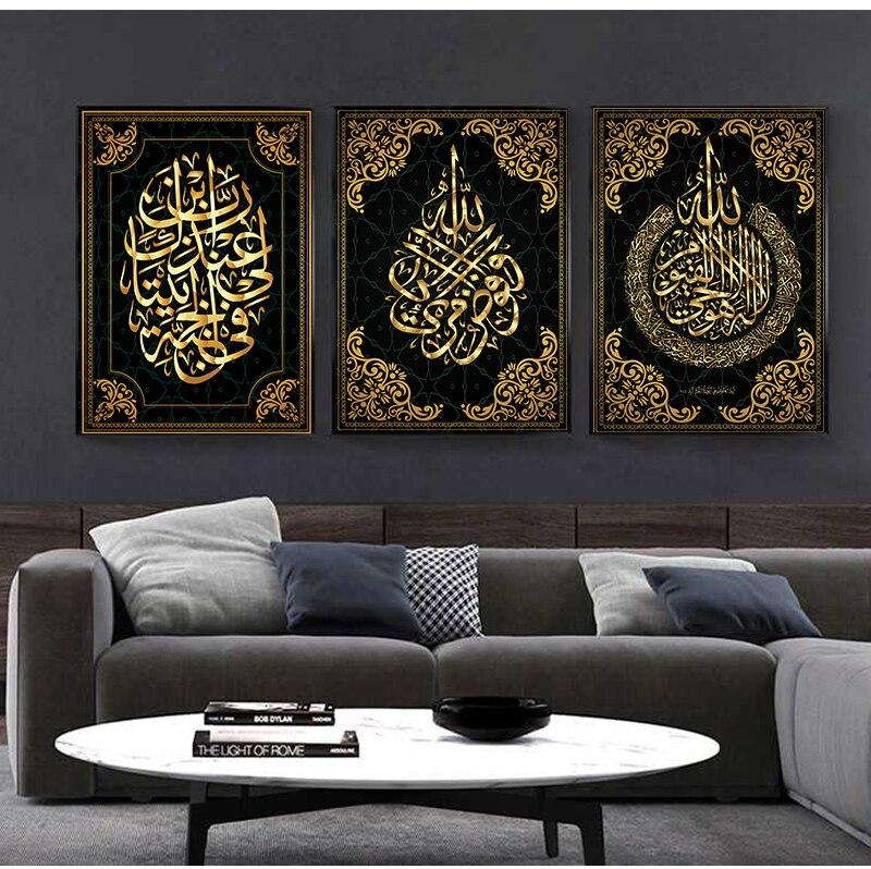Аллах исламская арабская каллиграфия настенный художественный постер черный золотой мусульманский Коран холст картина Рамадан украшение дома без рамки