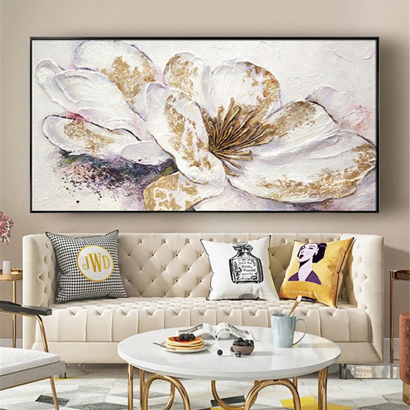 100% ручная роспись большого размера, золотая фольга, пейзаж, цветок, простая современная абстрактная картина маслом без рамки на холсте, украшение стены — купить товар онлайн с бесплатной доставкой по всему миру!