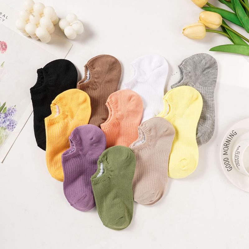 Женские невидимые хлопковые носки-лодочки, дышащие носки до щиколотки, кремового цвета, школьные носки для девочек с низким вырезом