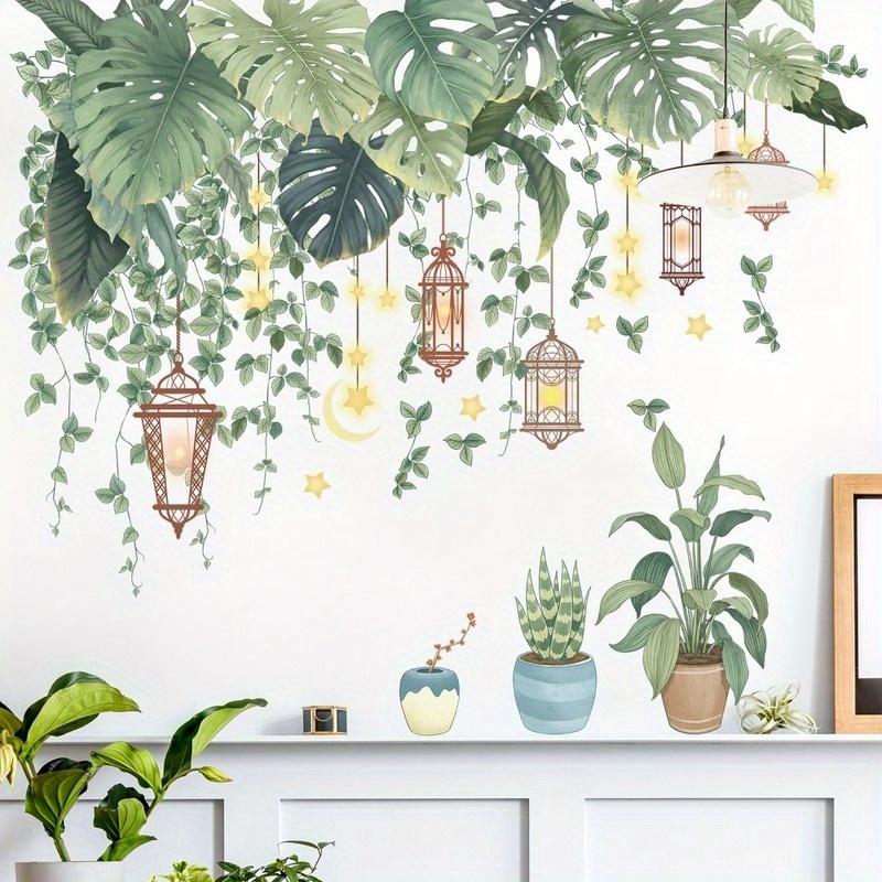 Наклейки на стену Съемные зеленые листья бонсай ПВХ наклейки Самоклеящиеся наклейки для домашнего декора