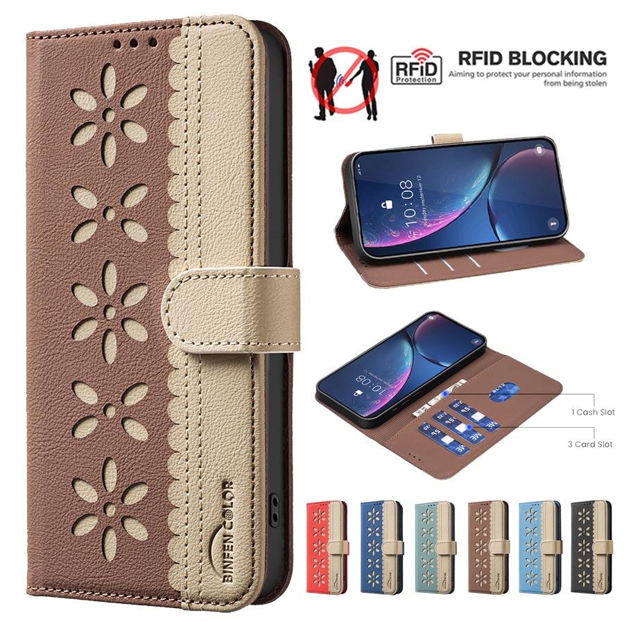 Чехол для телефона из искусственной кожи с полым цветком для iPhone 16 15 14 13 12 11 Samsung S25 Ultra S24 S23 S22 A56 A36 A16 A15 A14 с защитой от кражи и щеткой