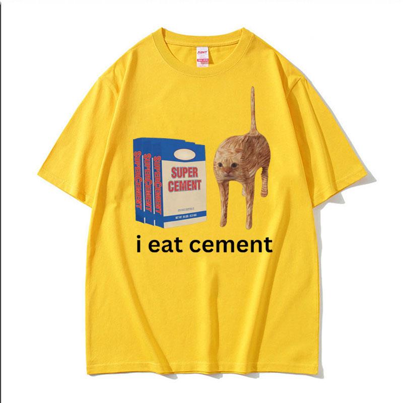 Футболка с надписью «Я ем цемент» Смешная, саркастическая, оскорбительная, случайная, с принтом мема «кошка», футболки женские, унисекс, повседневные топы