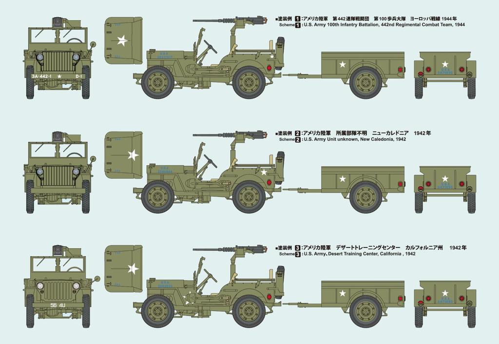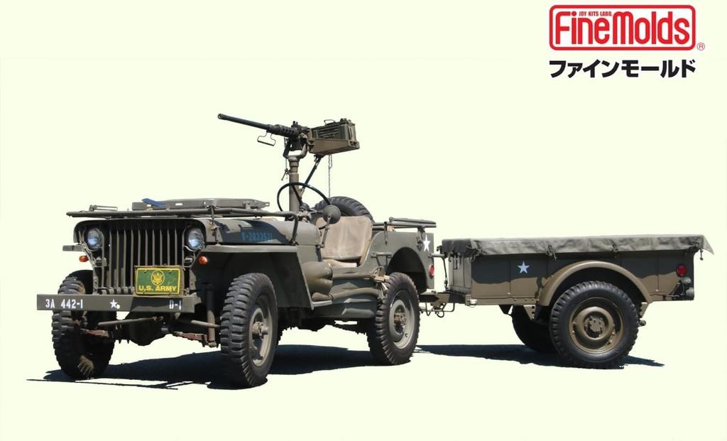 Fine Mold American ton 4x4 грузовик прицеп и машина пластиковая модель 82002 1/20 1/4 (с пистолетом) (боевая машина)