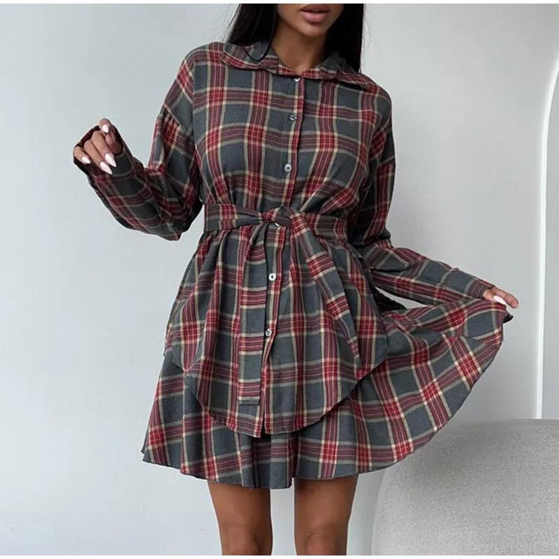 Свободная клетчатая рубашка с длинным рукавом и полуюбка, универсальный женский комплект с отложным воротником и широким поясом, весна 2025 г. — купить товар онлайн с бесплатной доставкой по всему миру!