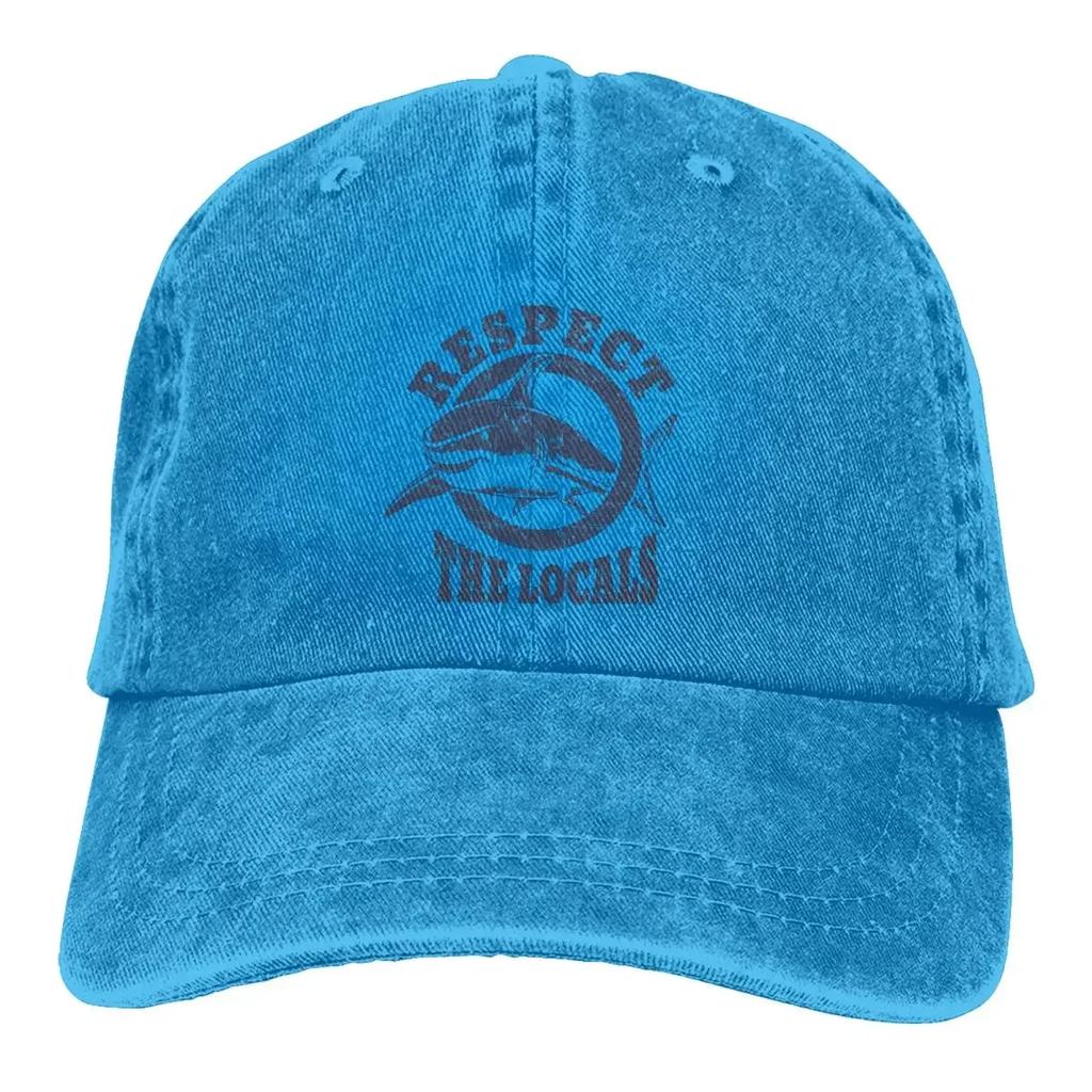 Уважайте местных жителей Винтажные бейсболки Shark Кепки с козырьком для дайвинга Подводное плавание Солнцезащитный козырек Ковбойские шляпы для мужчин Кепка дальнобойщика