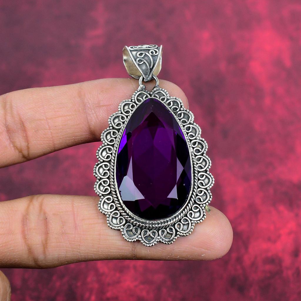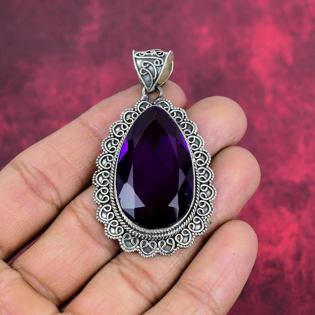 Подвеска с аметистом, ювелирные изделия из драгоценных камней, подвеска из цельного серебра 925 пробы, подарок для женщин, подвеска ручной работы