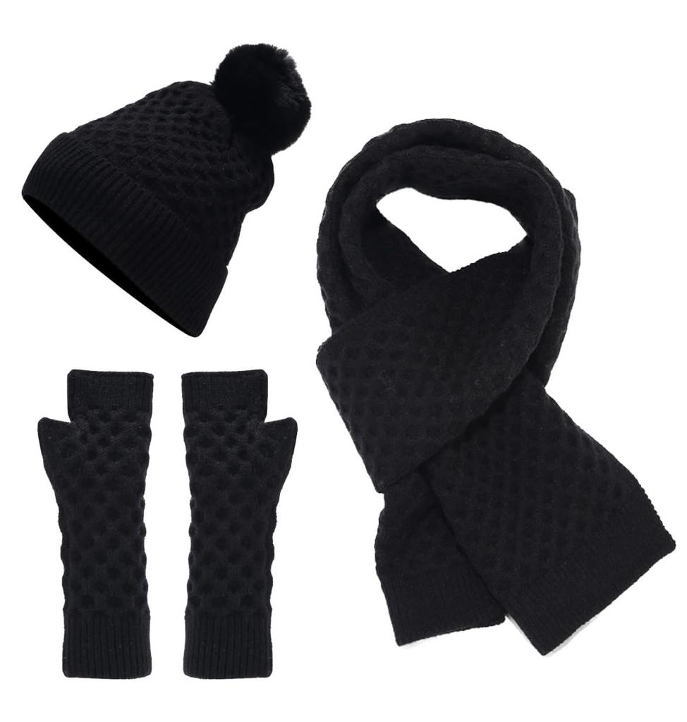 Вязать Аран холодный теплый пушистый начесывать вязать холодный холод подарок [$ole only] Глушитель, перчатки, шапка, комплект из 3 предметов, стильный, узор, зима, защита, удержание,