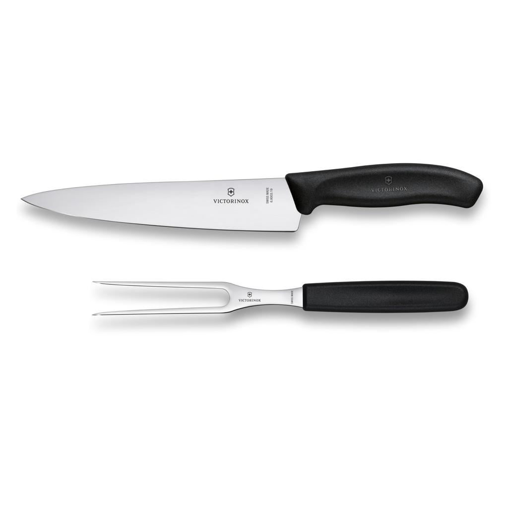 Нож и вилка VICTORINOX для разделки мяса, удобные для гриля, барбекю и посудомоечной машины, набор Swiss Classic, 2 предмета, черный, для стейков, безопасный, 6.7133.2G