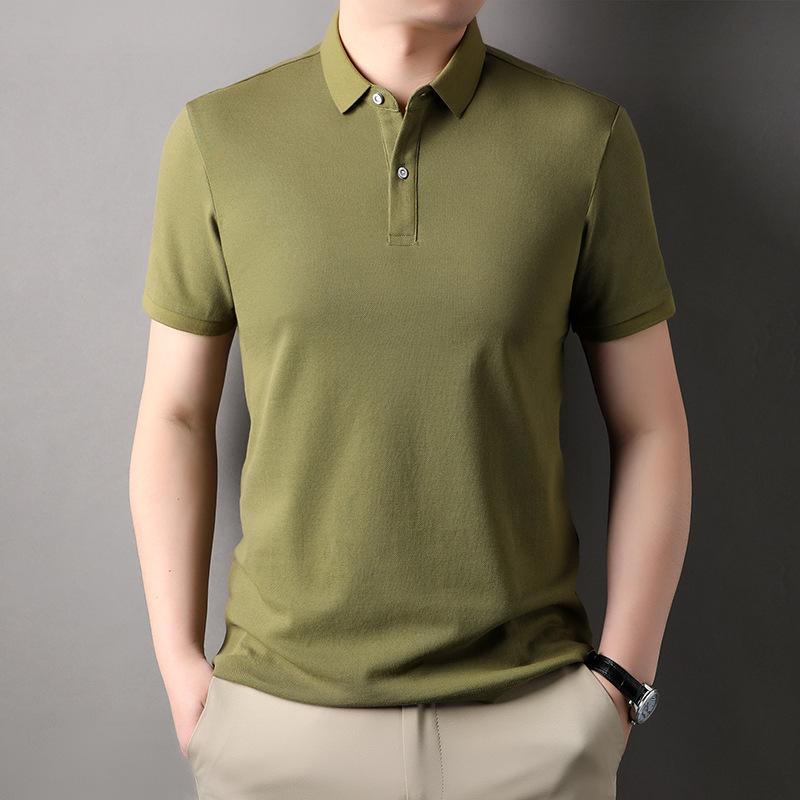 Мужская рубашка-поло из чистого хлопка с короткими рукавами, однотонная, свободная, повседневная, с лацканами, одежда для отца, высококачественная