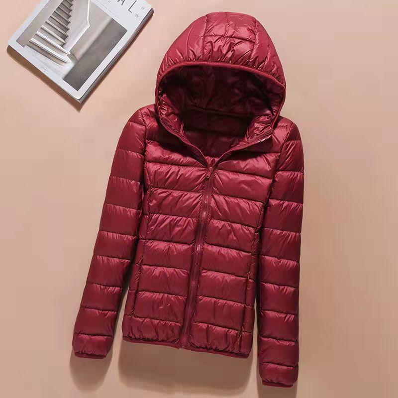 2023 Осень/Зима Женская Приталенная Легкая Пуховая Куртка с Капюшоном в Корейском Стиле