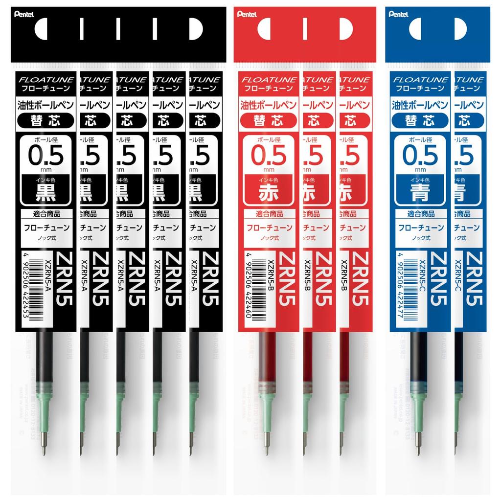 Pentel Стержень для шариковой ручки Flow Tune 5 3 2 Синий 0,5 мм Черный, Красный, XZRN5-10AMZ