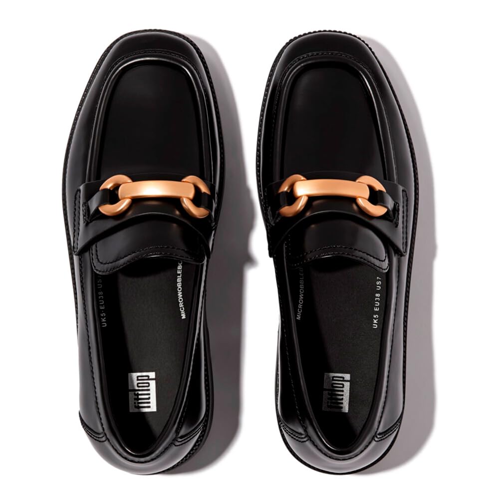 Лоферы ЛОФЕРЫ Черные см [Fit Flop] F-LUMA CHUNKY-SNAFFLE BOX-LEATHER D/WEDGE Женские 23.0