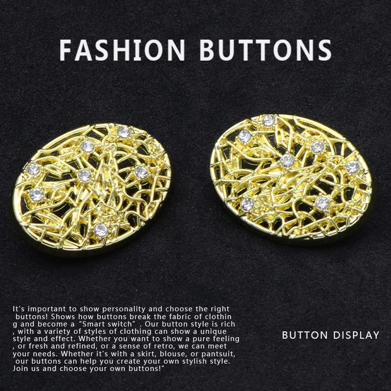 10 шт. Металлические пуговицы Золотые Высококлассные Полые Инкрустированные Бриллиантами Изысканные Пуговицы Дацюань для Пальто Свитера Кардигана