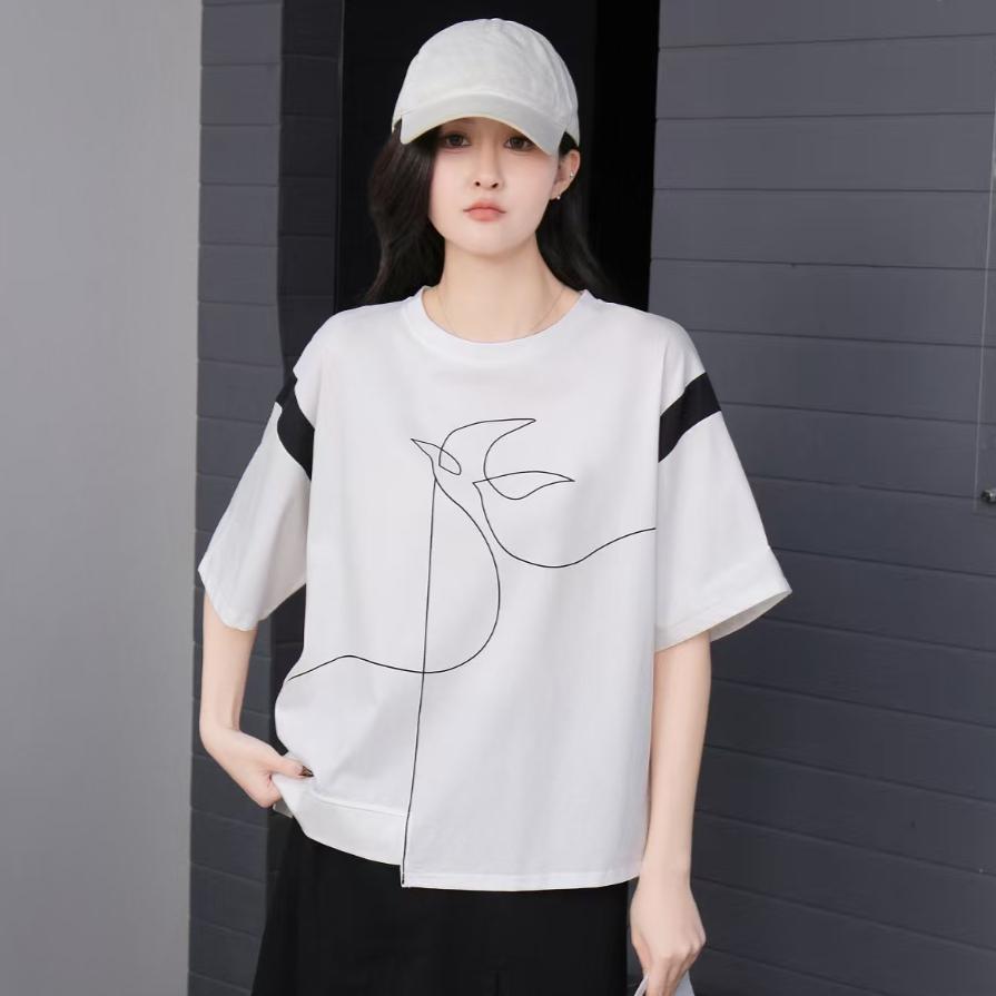 Dimanaf 2025 Летняя хлопковая футболка женская с принтом асимметричная с коротким рукавом свободная — купить товар онлайн с бесплатной доставкой до всему миру!