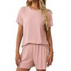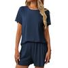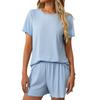 Женская повседневная однотонная пижама с короткими рукавами, шорты, домашняя одежда, комплект из двух предметов
