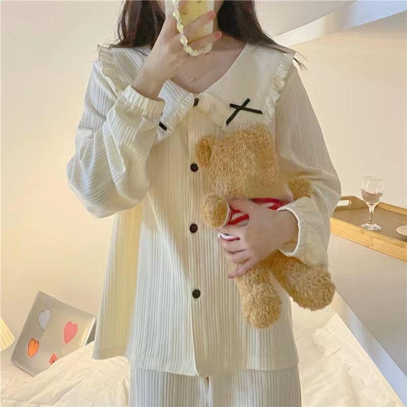 Новые женские повседневные свободные пижамные комплекты женские весенние и осенние пижамные комплекты для девочек в стиле принцессы милая домашняя пижама