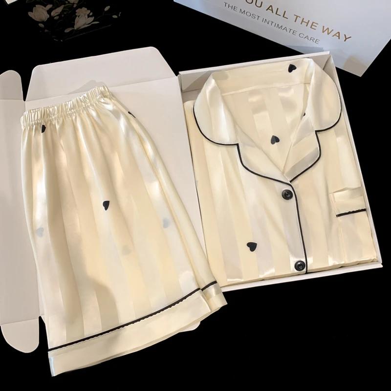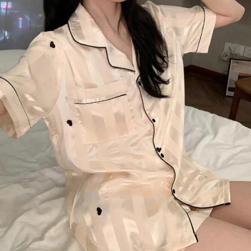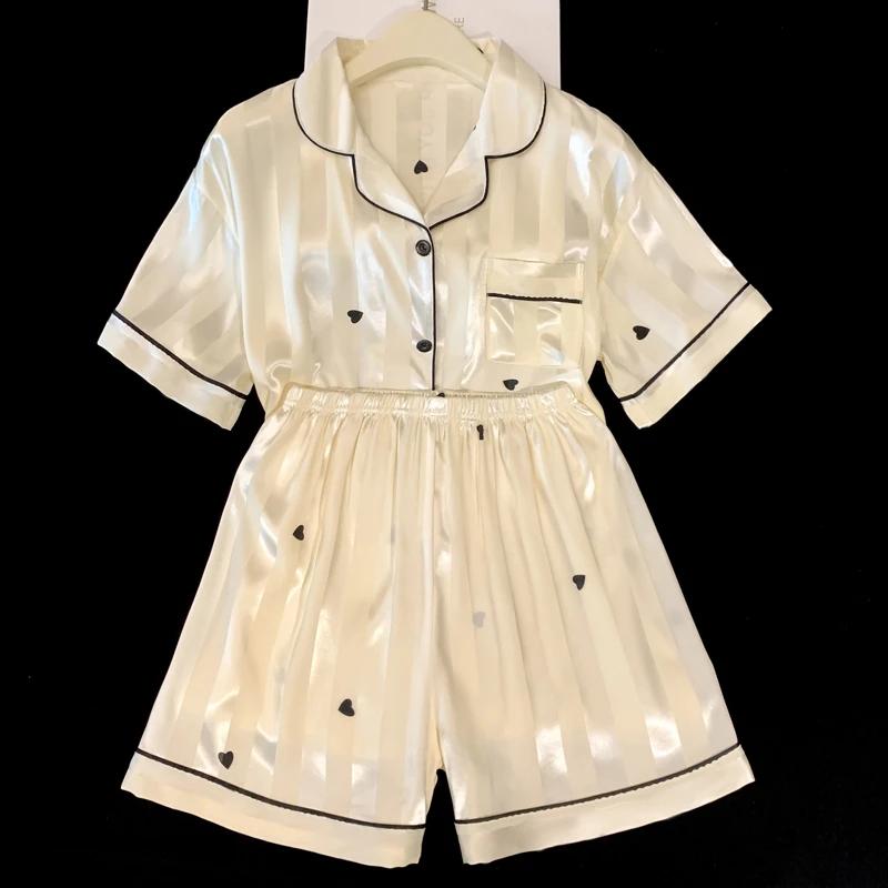 Французская романтическая черная женская пижама с принтом в форме сердца, простая домашняя одежда в полоску, летняя одежда для сна