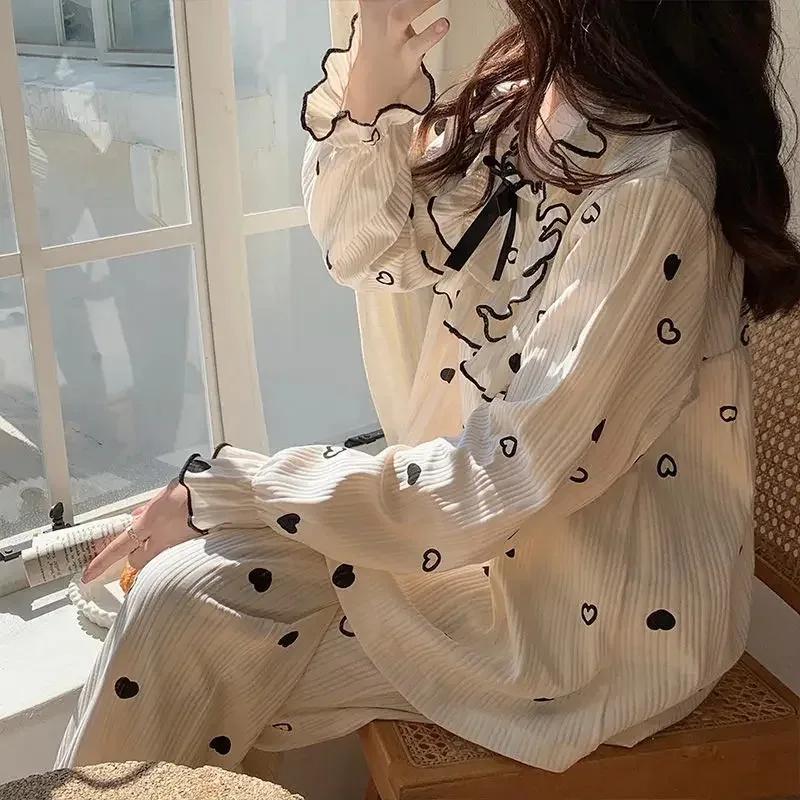 Новый женский дышащий комплект домашней одежды, свободный повседневный пижамный комплект для девочек с длинными рукавами, тонкая удобная пижама на весну и осень