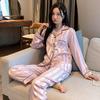 Весенне-осенняя женская пижама из ледяного шелка, домашний костюм, женский костюм с длинными рукавами из искусственного шелка в полоску