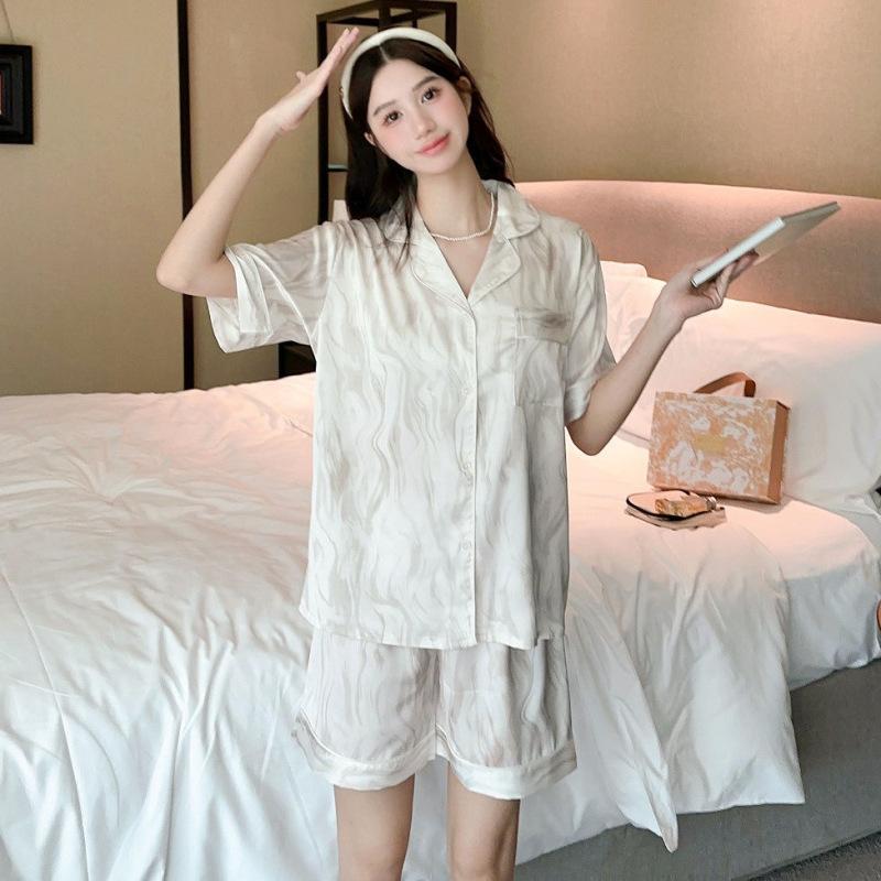 Пижама с имитацией крашения, женская пижама, корейский комплект с коротким рукавом, летний комплект из 2 предметов, домашний комплект