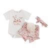 Пасхальные наряды для маленьких девочек, комбинезон с короткими рукавами и эластичными шортами, симпатичная повязка на голову, комплект из 3 предметов