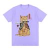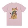 Забавная хлопковая японская футболка с изображением кота-самурая, футболки для влюбленных, футболки с изображением кота, ретро-футболка с коротким рукавом, унисекс, женская одежда