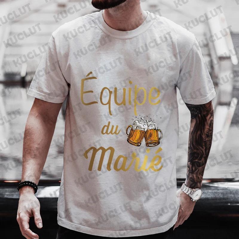 Французская команда Evg, топы, одиночные футболки для прощальной вечеринки унисекс, футболки для жениха и невесты, пивная графика, свадебная одежда больших размеров