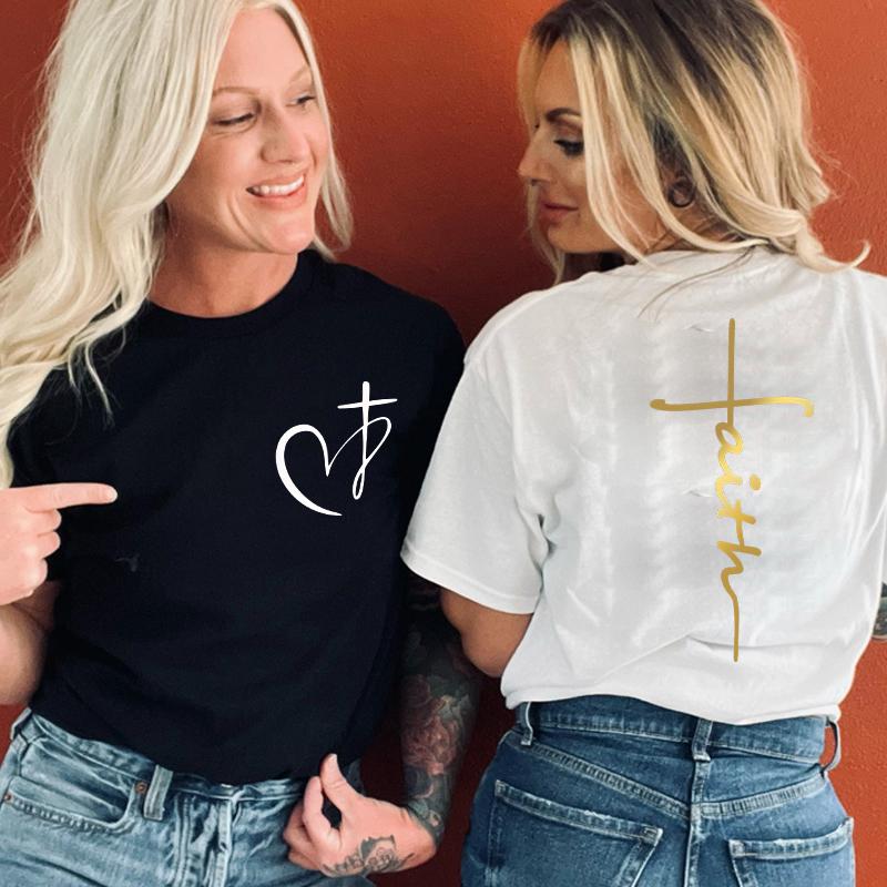 Женская летняя футболка с рисунком сердца и креста, модная футболка с принтом, женская брендовая футболка с коротким рукавом, футболка с надписью Faith Jesus, одежда