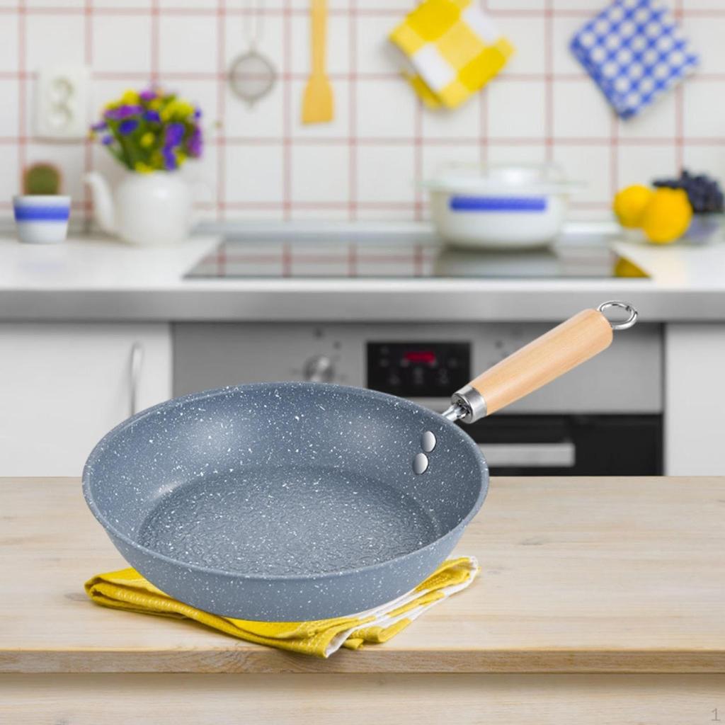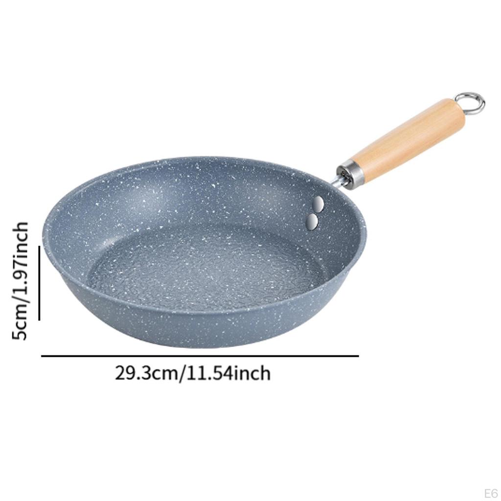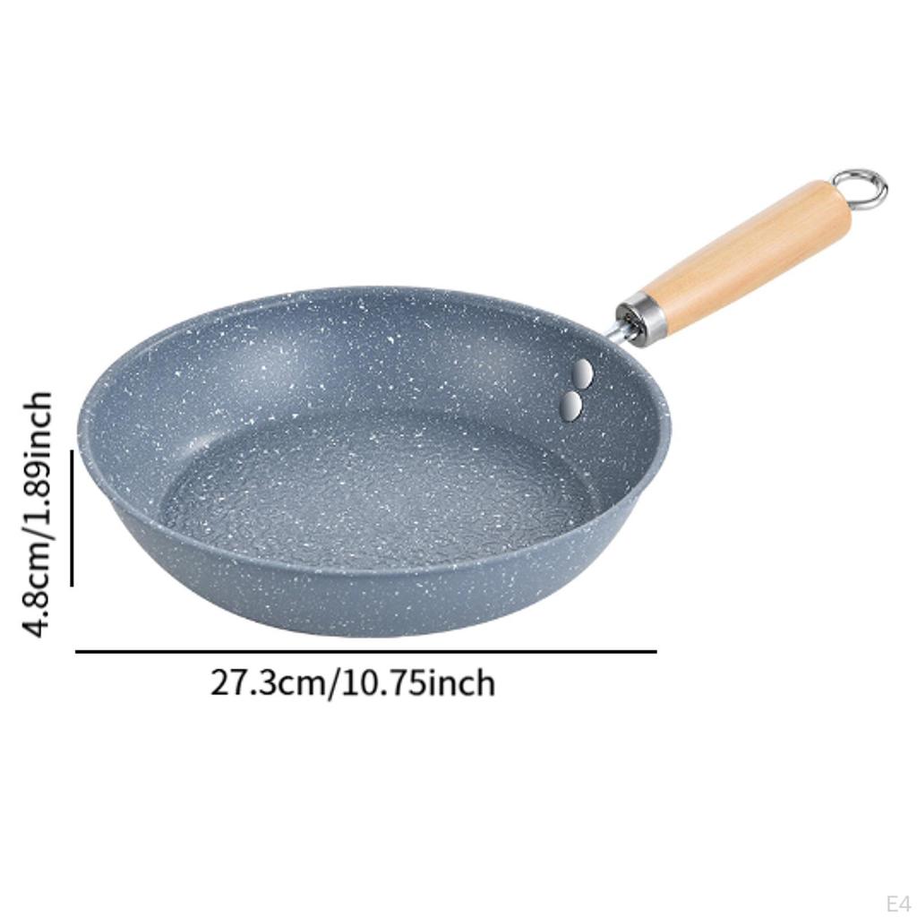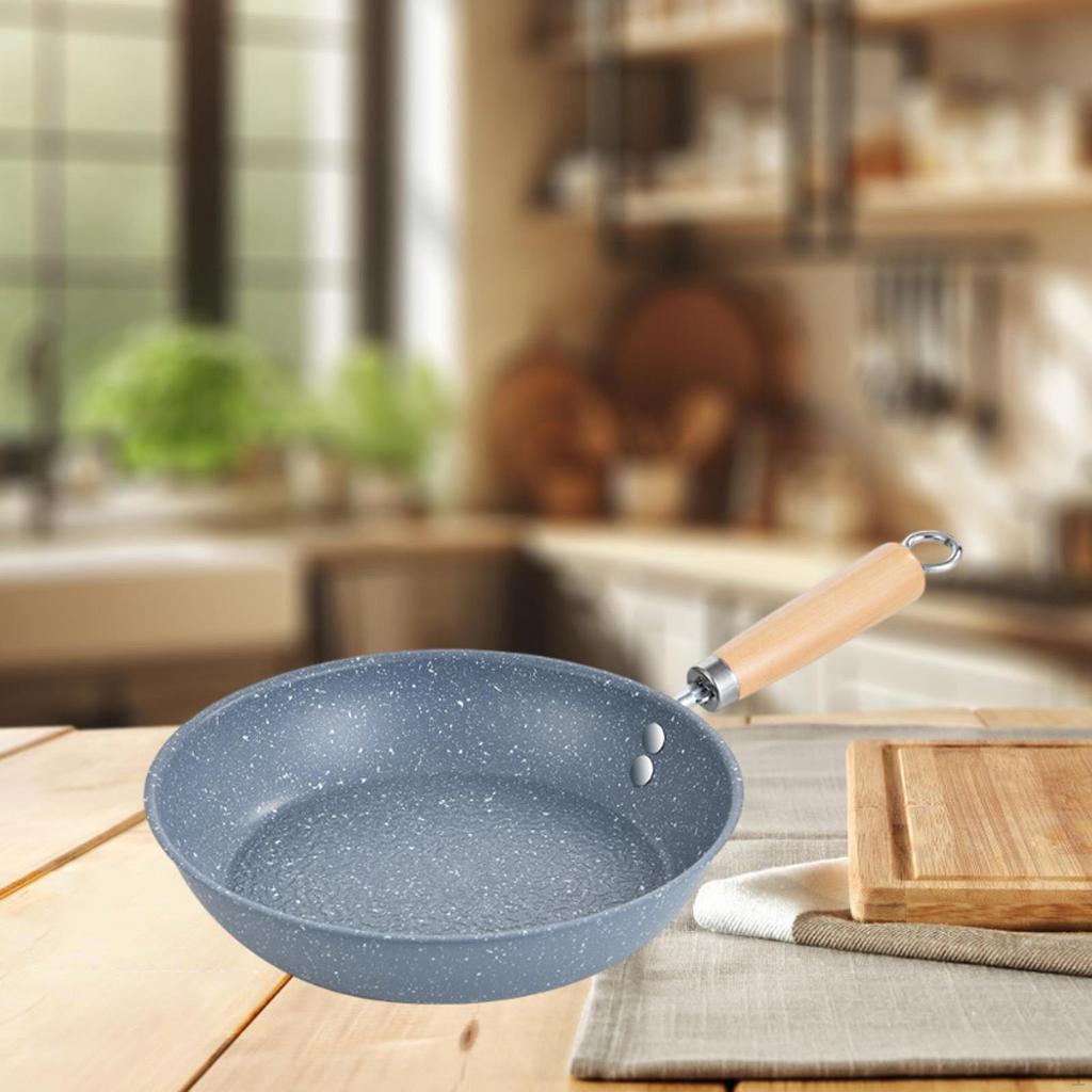 - 【Деревянная ручка】: Сковорода имеет эргономичную деревянную ручку, которая обеспечивает удобный захват и предотвращает ожоги.. На конце ручки имеется подвесное кольцо, поэтому кастрюлю можно повесить, когда она не используется.