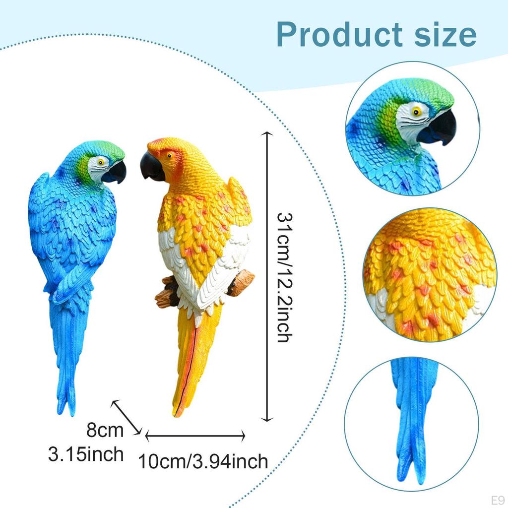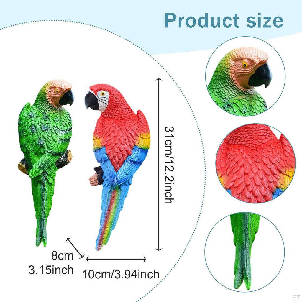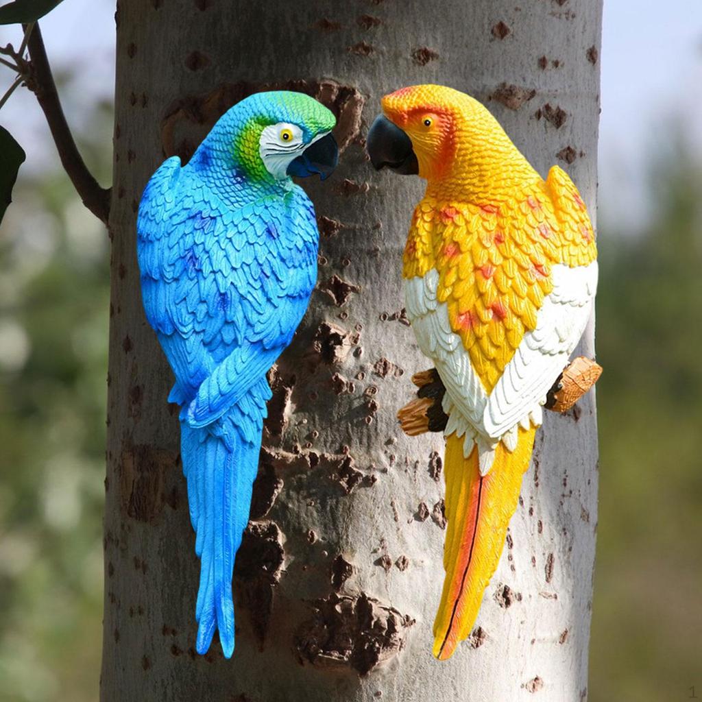 2 штуки фигурок попугаев, садовые статуи, украшение для двора, настенное украшение для дерева, для улицы