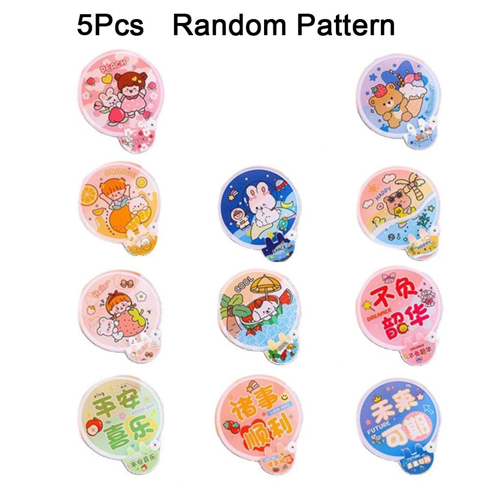 5Pcs Cartoon Round Pocket Fan Mini Hand Fan Portable Cute Folding Fan Kids Gift