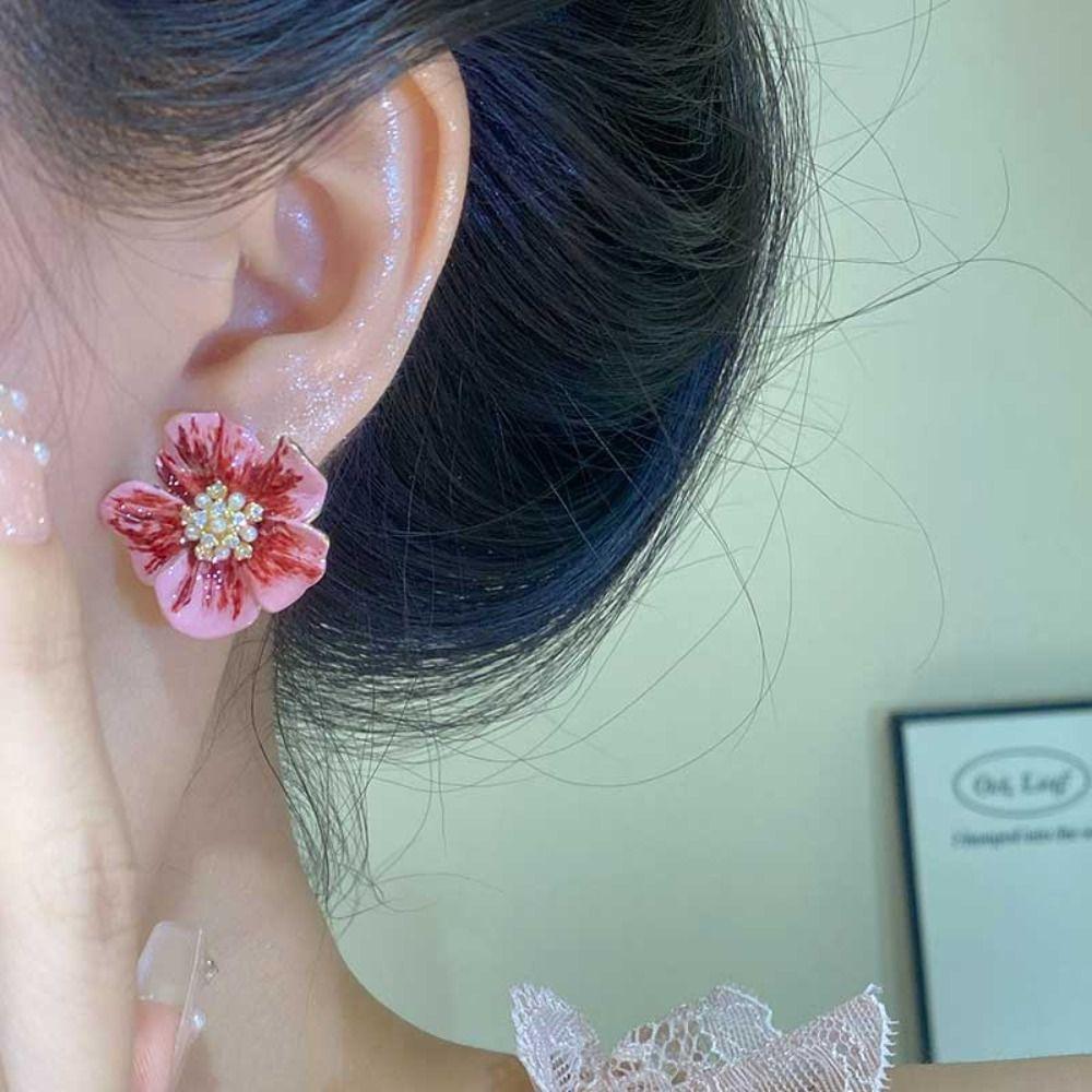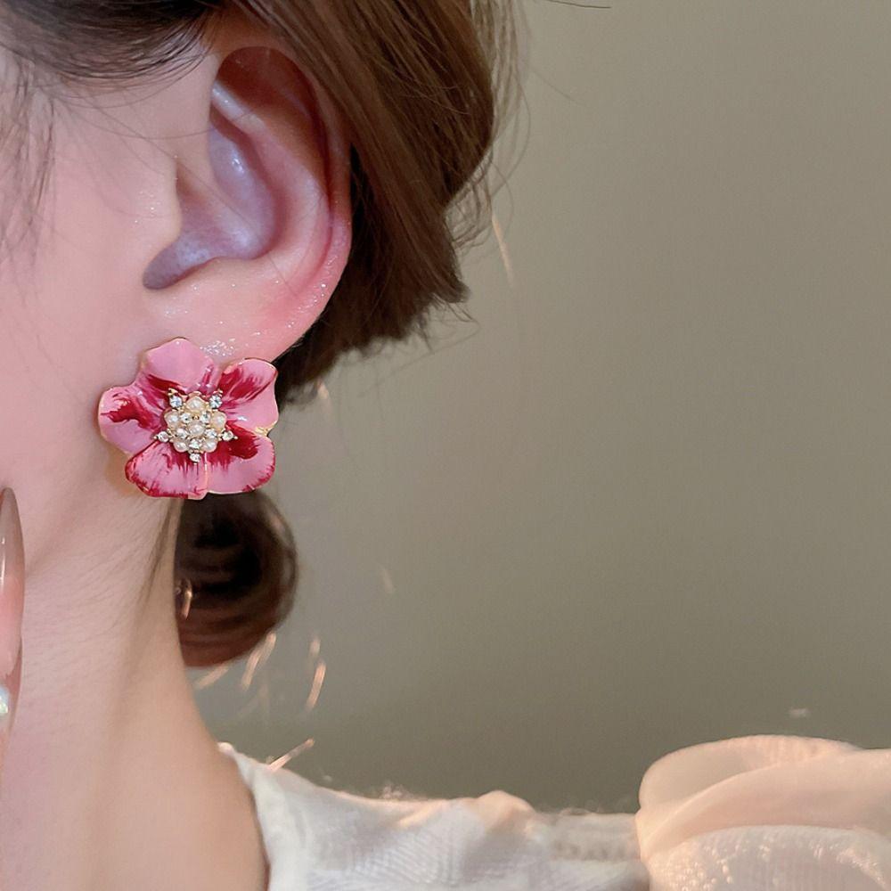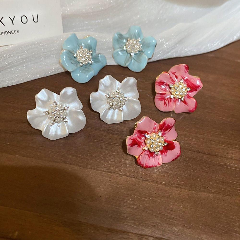 Милые серьги с жемчугом в виде цветка, милые серьги в корейском стиле, модные серьги-гвоздики в виде цветка с каплями масла для девочек