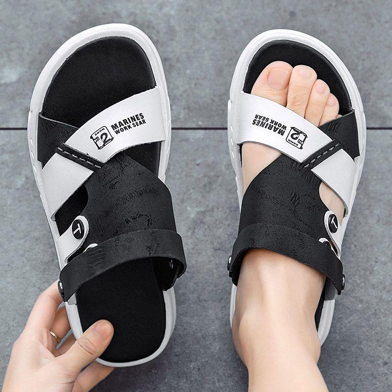 Мужские сандалии из водонепроницаемой кожи двойного назначения, новые шлепанцы, мужские трендовые тапочки для вождения, летние тапочки с дезодорантом для отдыха на природе