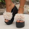 Сандалии женские босоножки на танкетке тапочки летние пляжные женские тапочки на платформе с цветочным принтом на высоком каблуке большой размер 44 модные женские сандалии