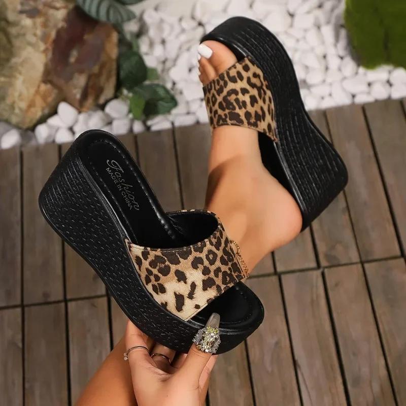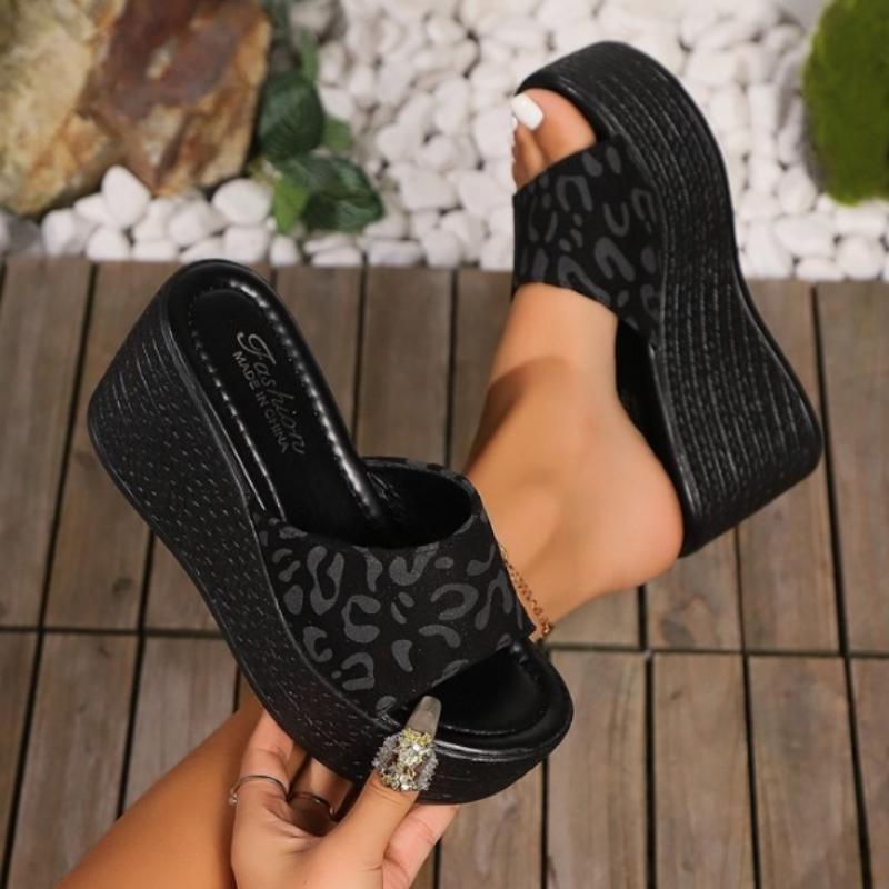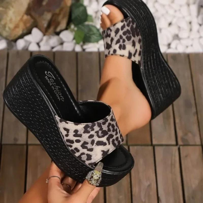 Женская обувь 2024 года, высококачественные летние женские тапочки, разноцветные, с леопардовым принтом, с открытым носком, на платформе, водонепроницаемые уличные тапочки