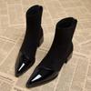 Весна и осень Высококачественные женские сапоги на низком каблуке для вечеринок 2024 года. Продажа новых стильных женских сексуальных однотонных модных сапог с острым носком