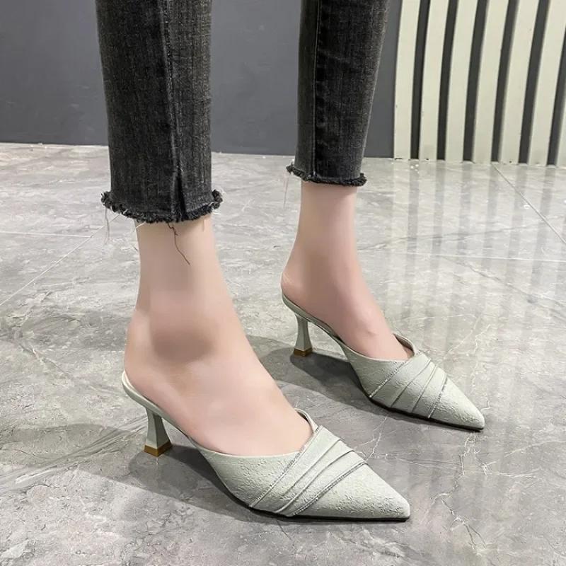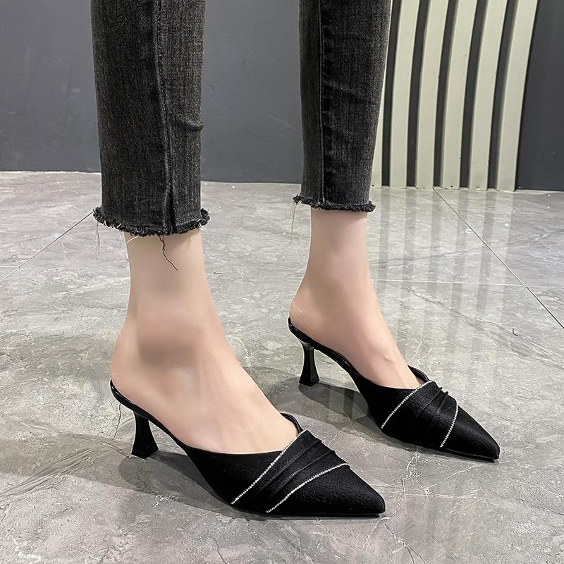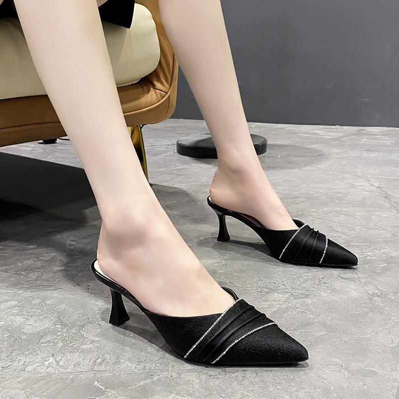 Летние новые женские тапочки, простые однотонные туфли-мюли Baotou Stiletto, сексуальные туфли с острым носком для банкета и офиса, женские туфли на высоком каблуке, Zapatos